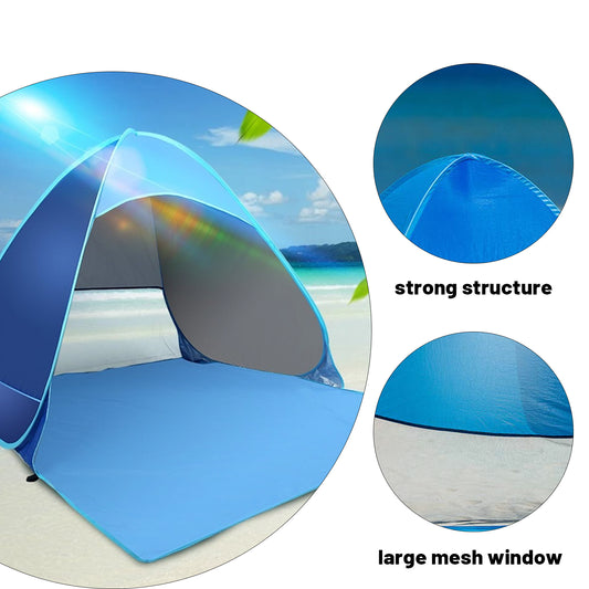 Large Pop-Up Beach Tent with UPF 50+ Sunshade & Waterproof Floor - Spacious Family Beach Shelter with Carry Bag - Compact Folding Design for Outdoor Camping, Picnics, and Travel
